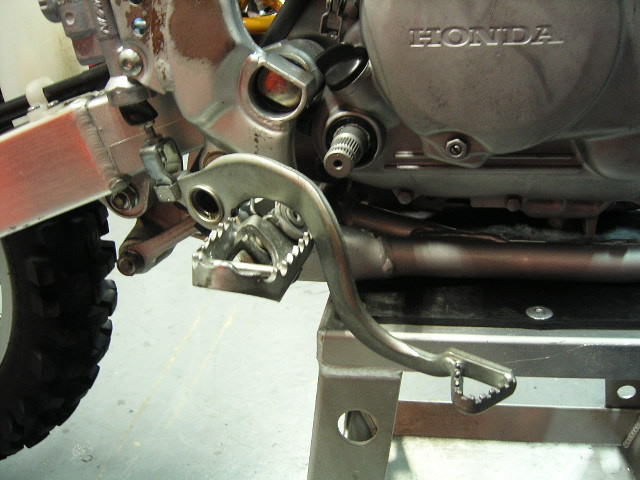 150Rはキックシャフトがかなり高い位置にあるので全然問題ありませんがキックシャフトの位置がかなり低いXR100エンジンは、そのままではキックシャフトとペダルが干渉してしまいます。