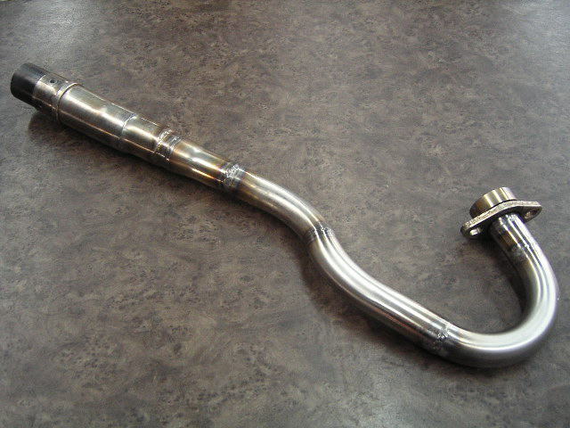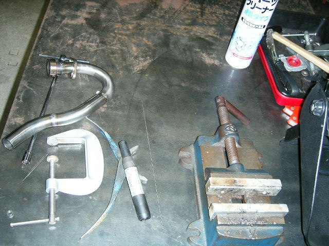 地元のマフラーコンストラクターKURODAYAさんに貴重な曲げパイプを分けていただいたのでその曲げパイプをカットして溶接していきます。 |