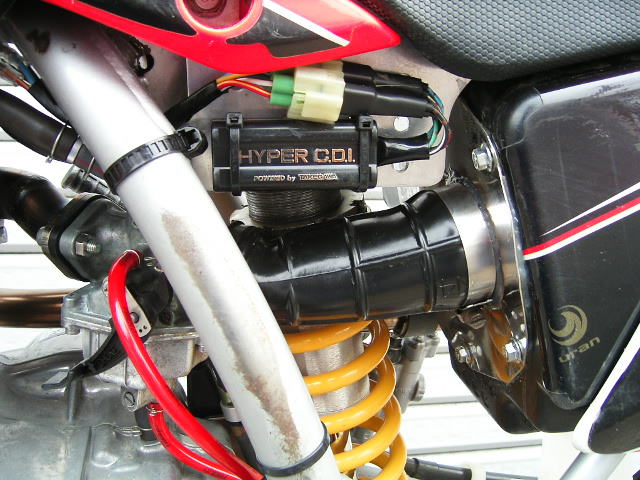 CDIはいろいろ試してみたいので取替えが簡単なようにステーを増設してこの位置に取り付け。