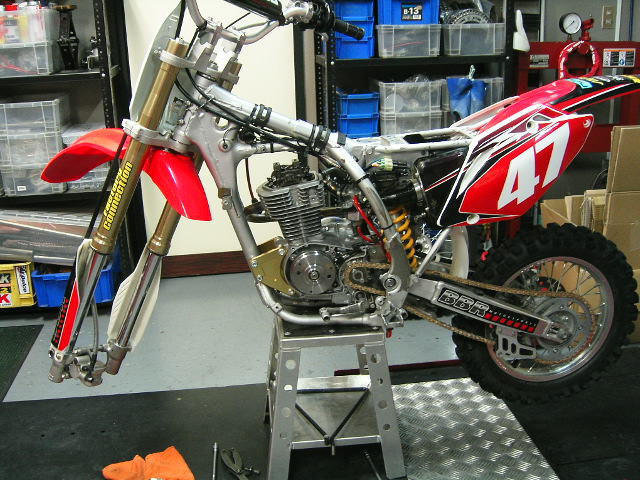 そこで作りが本格的しかも設計が新しいCRF150Rに搭載できないかと思いつきました。