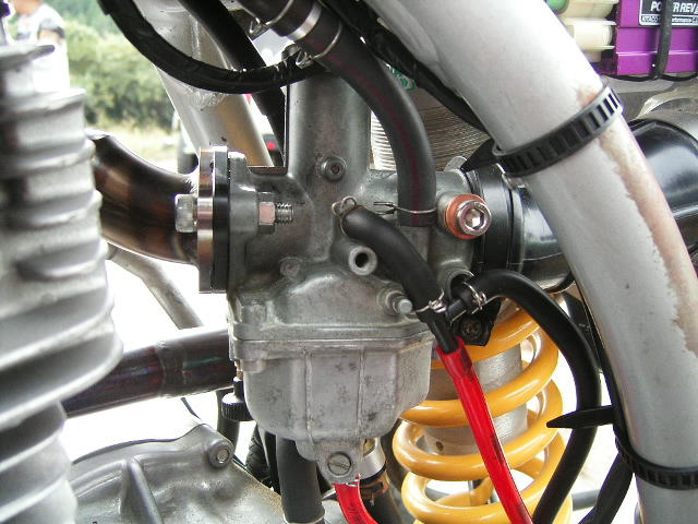 キャブレターはPD22のままですが、チョークバルブを取外し事実上ボアアップしたのと同じ効果が見込める。