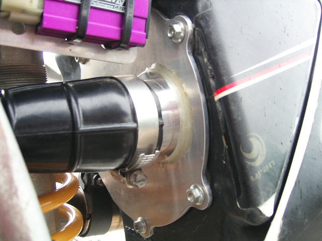 | エアクリーナー接合部を今までのステン板材からアルミ削り出しに変更精度の高い加工で密着度もアップしました。 |