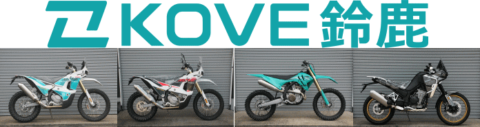 | KOVE鈴鹿 三重県唯一のKOVE正規販売店です。定番の450RALLYから2025年は、800X-RALLY&800X-PROもラインナップに加わり、より個性的で魅力溢れるバイクブランドに進化してます。 KOVE450RALLYページリンク |