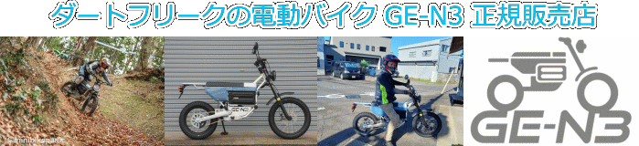 | ダートフリークのエレクトリックバイク部門が開発した一般公道走行可能(原付一種50CC相当)の遊べる使える新しい遊び道具の、取扱を開始しました。見た目はポップですが、ミニバイぱにっくで鍛え上げられた本格山遊びマシンです。 |