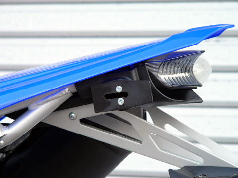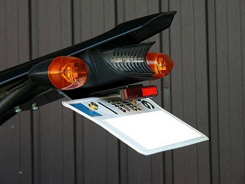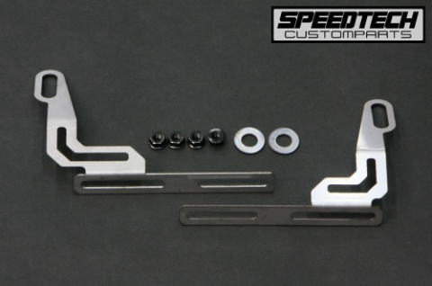| より簡単に確実に取付け出来るように設計を変更し、部品点数も減らした新型です。ステーの使用材質も、振動の耐クラック性に優れるスチール製に変更し自動車部品にも多く使用されるカチオン塗装にて表面を仕上げており耐腐食性も向上しております。SPEEDTECH ライセンスホルダー(リフレクター&ライセンスランプ付)の装着も考慮した設計ですので、公道走行の際には必ず装着をお願い致します。 Made in Japan |