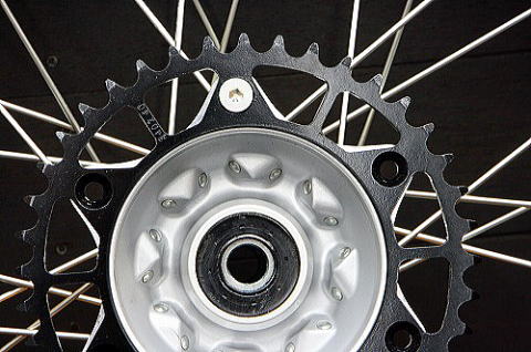 そこで、MXレーサーに使用されているM8テーパーボルトを使えるようにしたのが、このスペーサーセットです。スプロケットも、テーパーボルト用のスプロケット(CRF250R用など)をご使用ください。ナットの直径も14mmとなり、モタードのワイドリム使用時でもメガネレンチが使用出来ます。作業性が大幅にアップします。