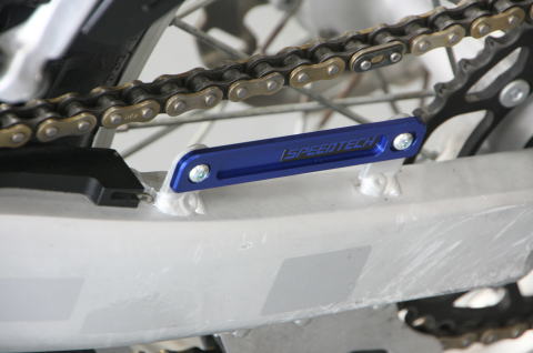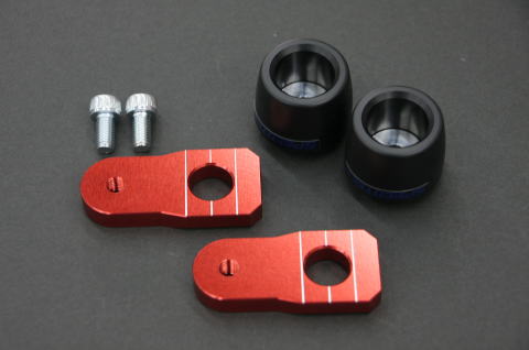 | スピードテックの代表商品でもありますアクスルスライダー。当社製はアクスルブロックと一体で製作するためタイヤ交換のたびに取外す必要もなく、しかもアクスルブロック一体ですので強度に優れています。アクスル貫通型タイプは、転倒時に強度の弱さが出てしまいますね。スライダー部はジュラコン製を採用して転倒時にスライダー本体が回転してスライダーが外れることを防ぐ機構を備えています。Made in Japan |