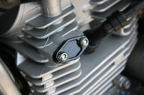 | 社外マフラー交換と同時にしたいのがエアインジェクション(AI)二次エアー供給装置システムの取外し作業。排ガス規制のために誕生したAIシステムですが、装置を取外すことで軽量化やメンテナンス性の向上に繋がります。エキゾースト交換車両なら装着して当たり前の部品です。NCマシニングによりアルミ削り出し(ブラックアルマイト)のメクラ部品と他2点のメクラ栓がセットになります。幅広い車種にも対応していますので販売店様の在庫も少なく済みます。