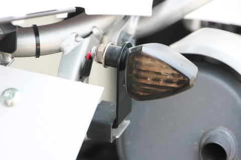 ノーマルウインカー取付け可能(ウインカーがナンバープレートで隠れてしまう事を防ぐ専用の延長ウインカーステーが付属します)