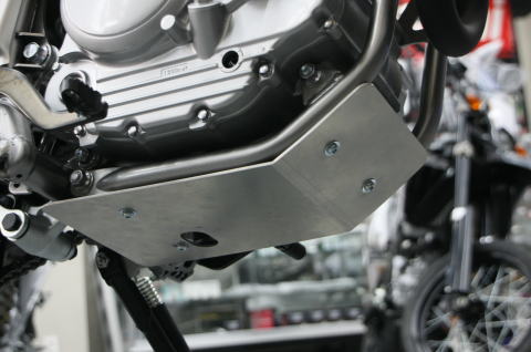 | WR250R/X用の市販のスキッドプレートは、サイド部分までしっかりガードされた商品が多くガード性としては、大変良い商品なのですが、どうしても見た目が大柄でストリート走行に、たまに林道へ行くぐらいなら、それほど大柄なスキッドプレートも必要ないので、もっとコンパクトなスキッドプレートは無いものかと各メーカーさんのカタログを探しても見当たらないのでスピードテック製で作ってしまいました。大柄スキッドプレートのもう一つの欠点はエンジン音の反響音が大きいことです。この音が気になっているオーナー様も多いのでないでしょうか?そんなな「無い物は作ってしまおう」精神で製作した一品です。製造は、もちろん地元鈴鹿市内の製造工場で製作されております。材料から製造まで安心の純国内産ですので、安心しておすすめできます。 Made in Japan |