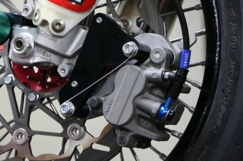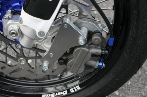モトクロスレーサーをモタード化する場合に高額の部品が多数必要になりますが、少しでも安価にモタード化が出来るようにと考案したのが、このキャリパーサポートシリーズです。かつてのロードバイクに採用されていたサイズと同等のブレーキキャリパーを備えるWR250X純正のブレーキキャリパーを他車種にも取付け出来るようにしました。ブレーキディスクは、320パイのローターを使用することを前提に設計しております。車種等で製造誤差がありますので取付けの際は、シムなどでクリアランスの調整をお願い致します。各部ネジロック剤の使用とワイヤーロックを推奨いたします。競技専用部品ですので公道での使用は出来ません。 Made in Japan
