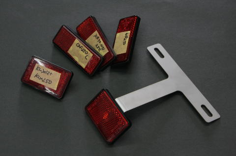 フェンダーレスキットなどを取付けた場合に必ず必要になる反射鏡(リフレクター)ですが、もちろんノーマルの車体にも必ず装着されています。そのリフレクターを捨てるのは地球資源の無駄になりますので、もう一度再利用できるステーを製作いたしました。主要国内メーカーのリフレクターなら装着できると思いますが、全てを装着テストしたわけではないので車種にはご注意ください。装着確認車輌CRF250L/M CRM250 XR50/100/230/250/400 WR250R/X