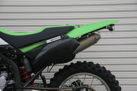 カワサキの人気車種KLX250(08-16)&DトラッカーXの、リヤフェンダー周りを一新することができるフェンダーレスキットです。使用するのは04-07モデルのDトラッカー用のリヤフェンダーを一部カットして使用します。メインフレームのカット等は必要ありませんボルトオン取付け可能です。テールランプは、DRCエッジテールランプ(レッドレンズ)を使用しますが、現在お持ちの車輌にエッジテールが装着されている場合には再使用できるようにステーのみの設定もご用意いたしました。ウインカーはノーマルウインカーも取付けれるように設計いたしました(もちろん社外品(8mm径)の使用も可能です)。使用するDトラッカーのフェンダーはポリプロピレン製ですので比較的簡単にカットできますが、カット作業が難しい環境のお客様にはカット済リヤフェンダーの設定もご用意いたしました。リフレクターは付属しませんので当社製純正リフレクター用ステー等をご購入ください。