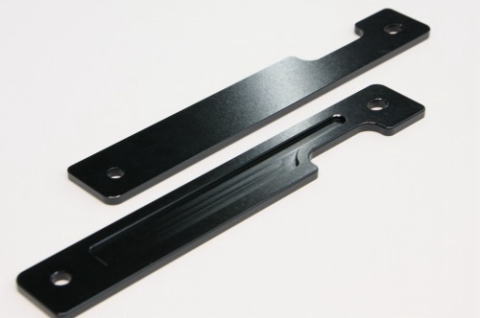 使用材質はフロント部はアルミ削り出しにブラックアルマイト表面仕上げ。リヤはスチール材プレートをレーザーカッティングし仕上げております。純正部品でも採用されているスチール製ですので耐久性も抜群です。