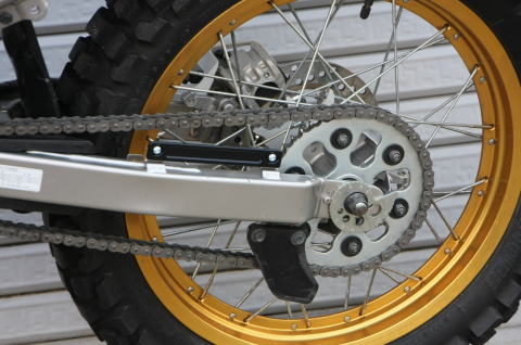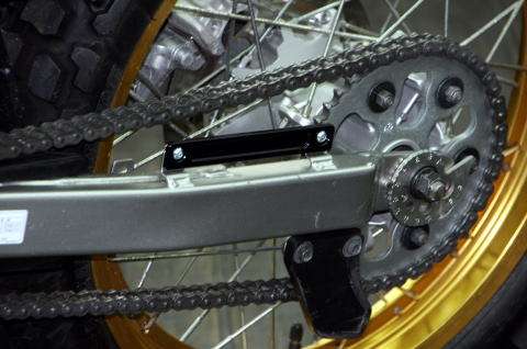 | KLX125に取付け例 (凹部分は、当社チェーンガイド取付け用です) |