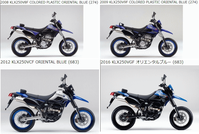 DトラッカーXの青色フェンダーについてお問い合わせが多いので追加説明させていただきます。上記モデルの純正リヤフェンダー品番35022-0039-274のリヤフェンダーは、リヤフェンダー色番274で適合します。
